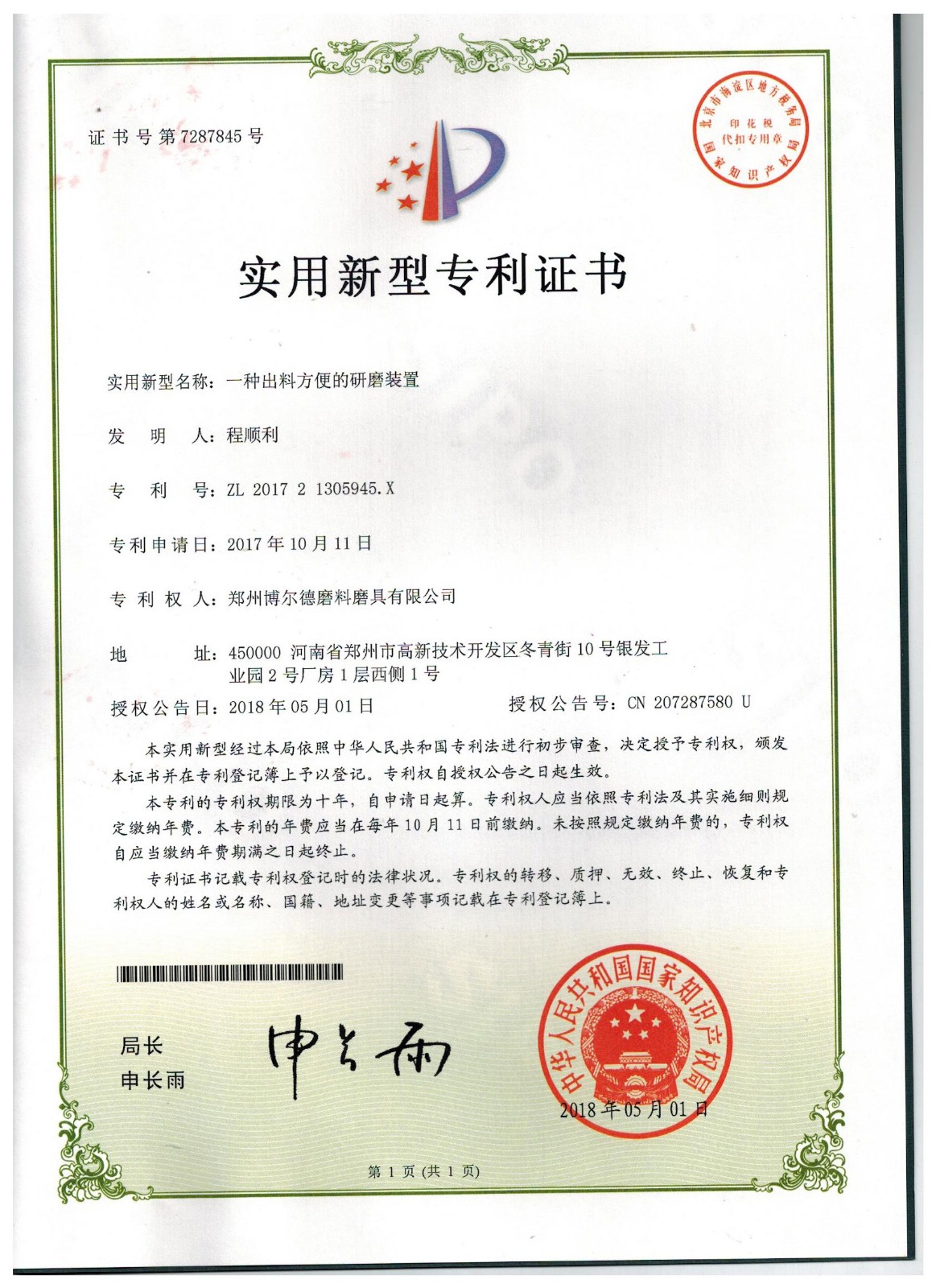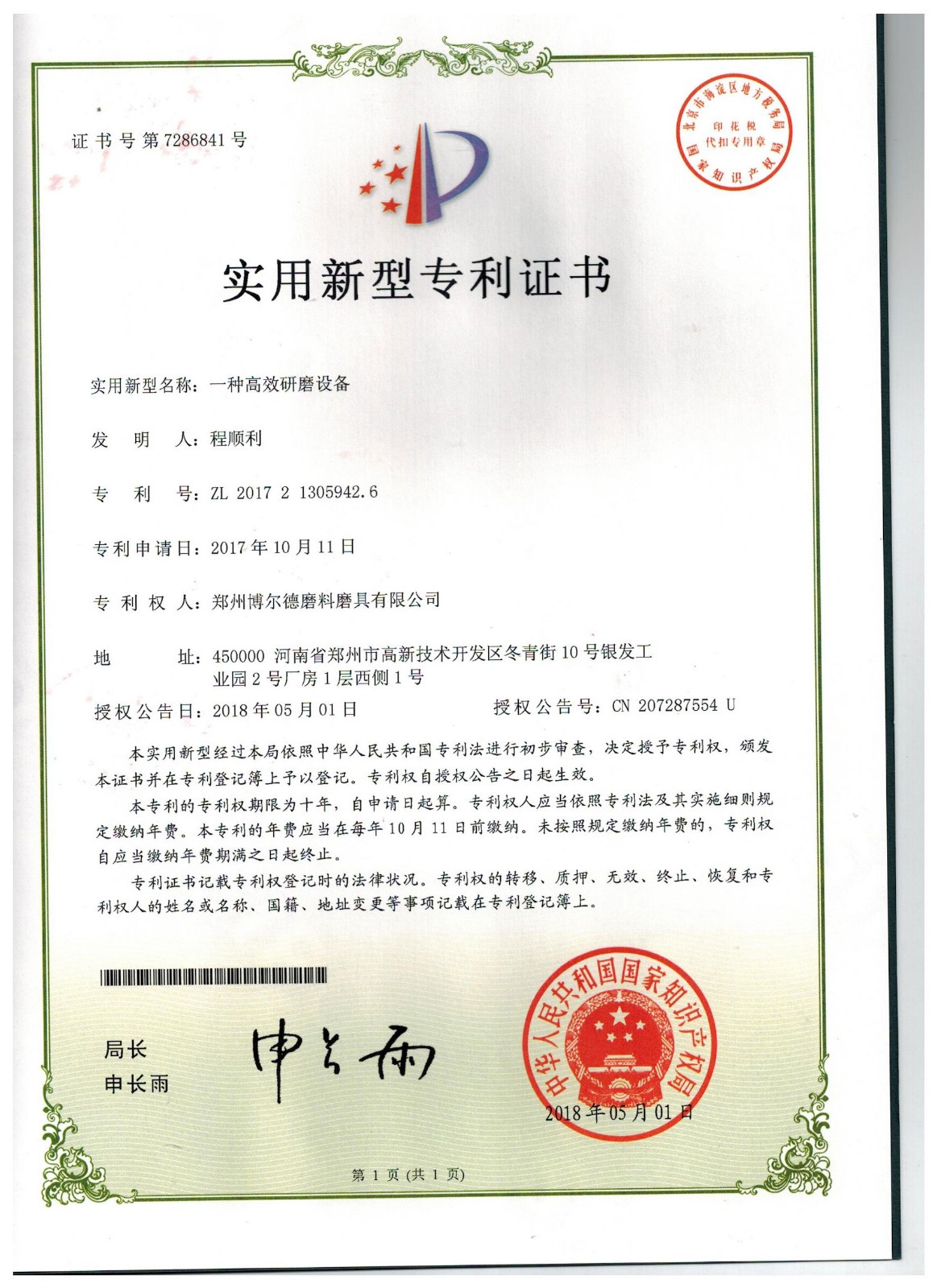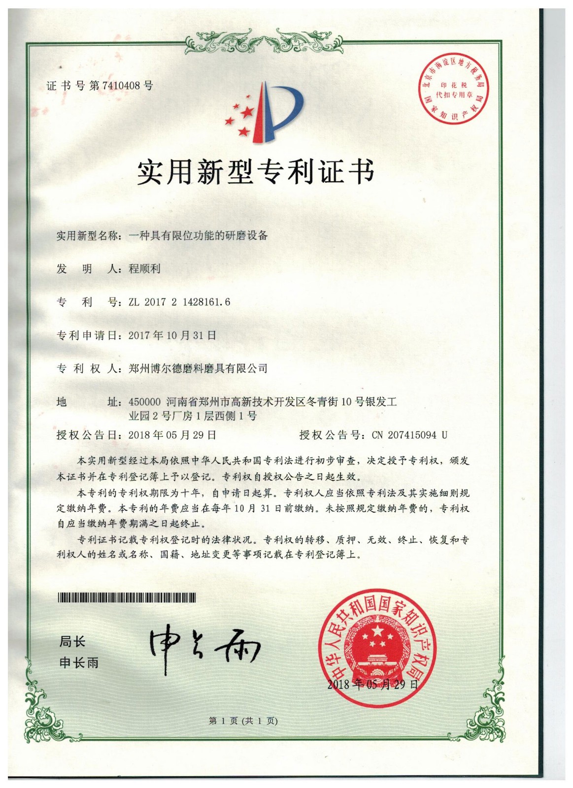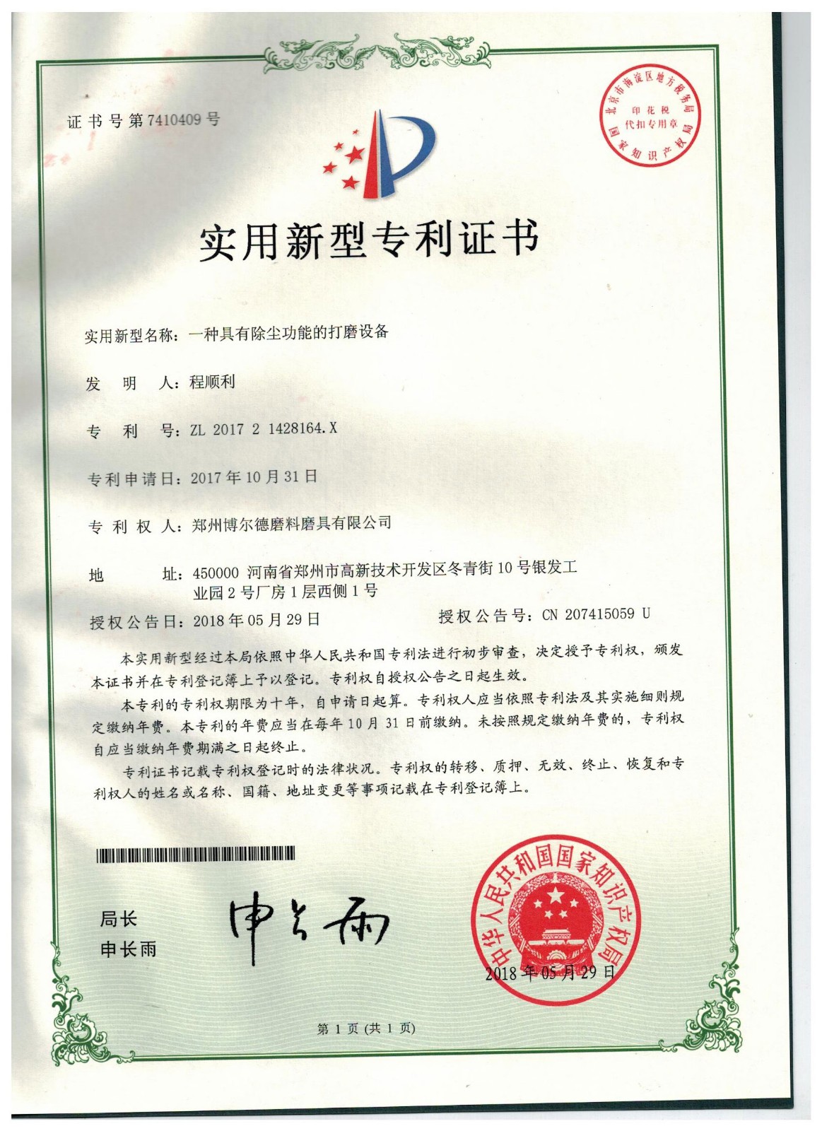 博爾德集團旗下專利證書展示