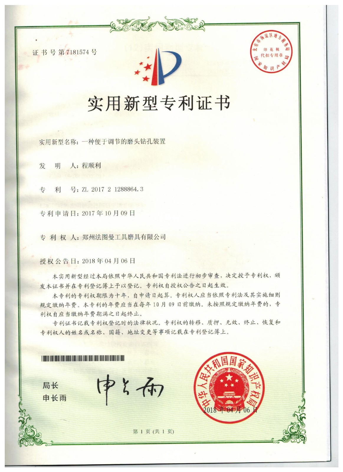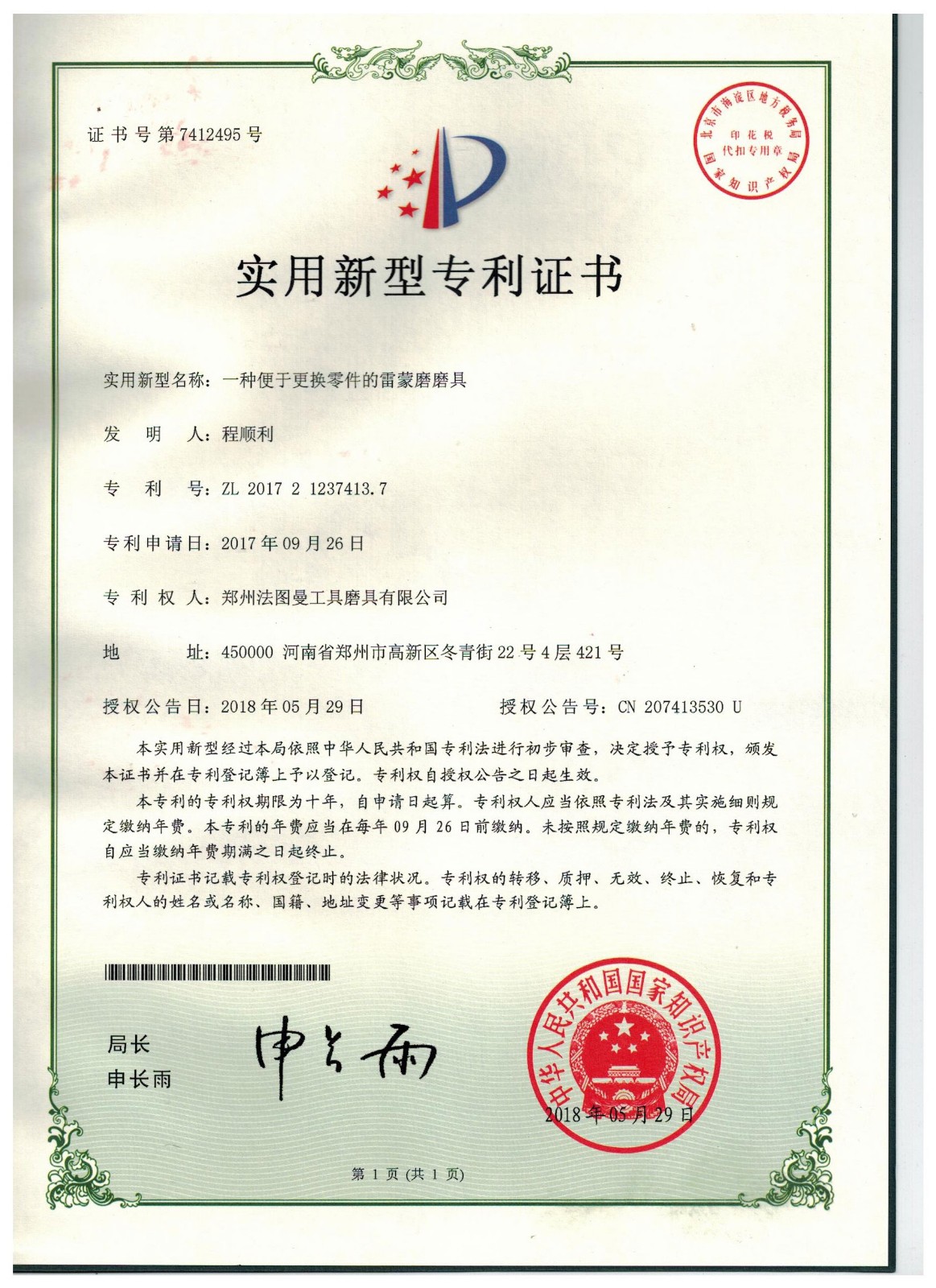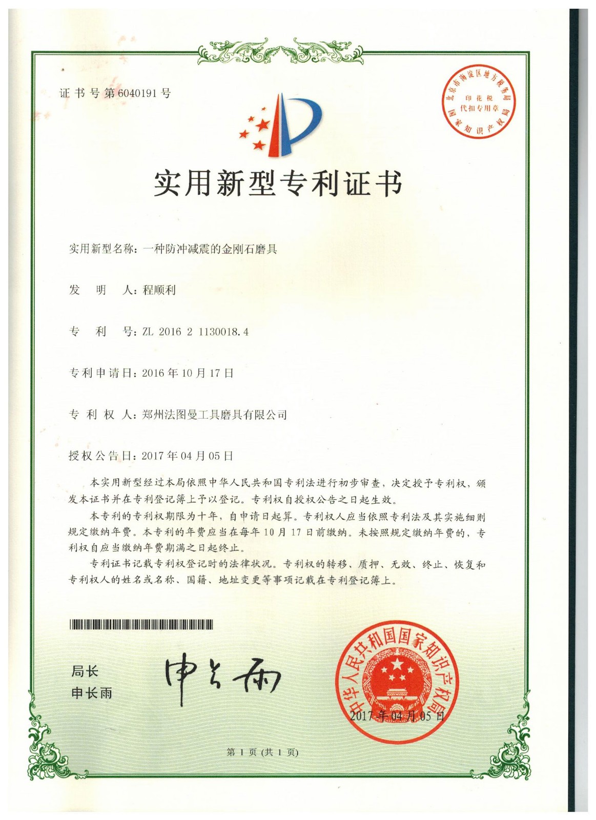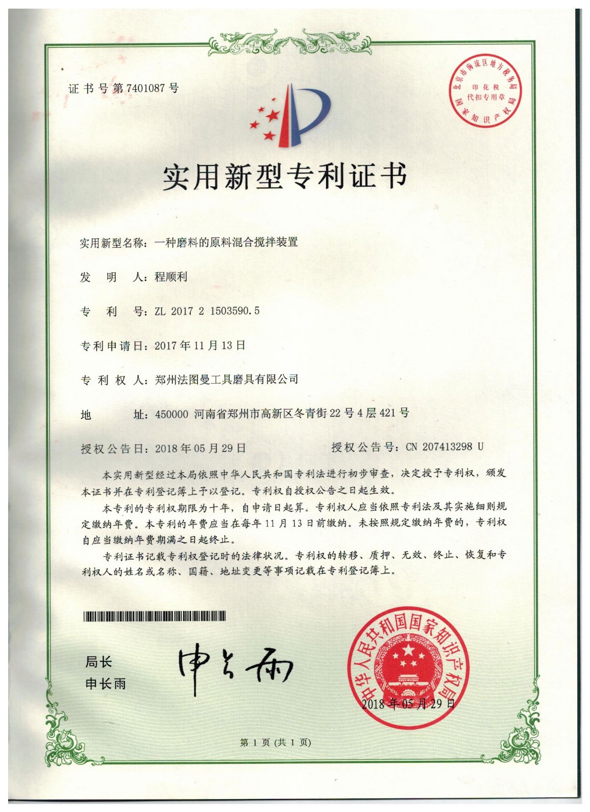 博爾德集團旗下專利證書展示