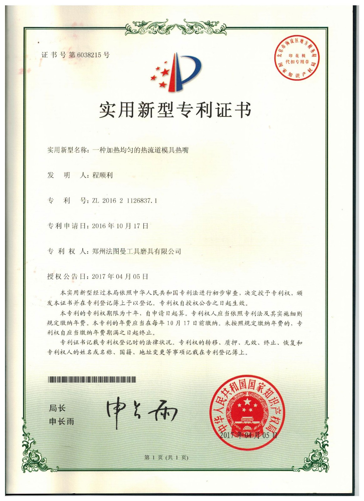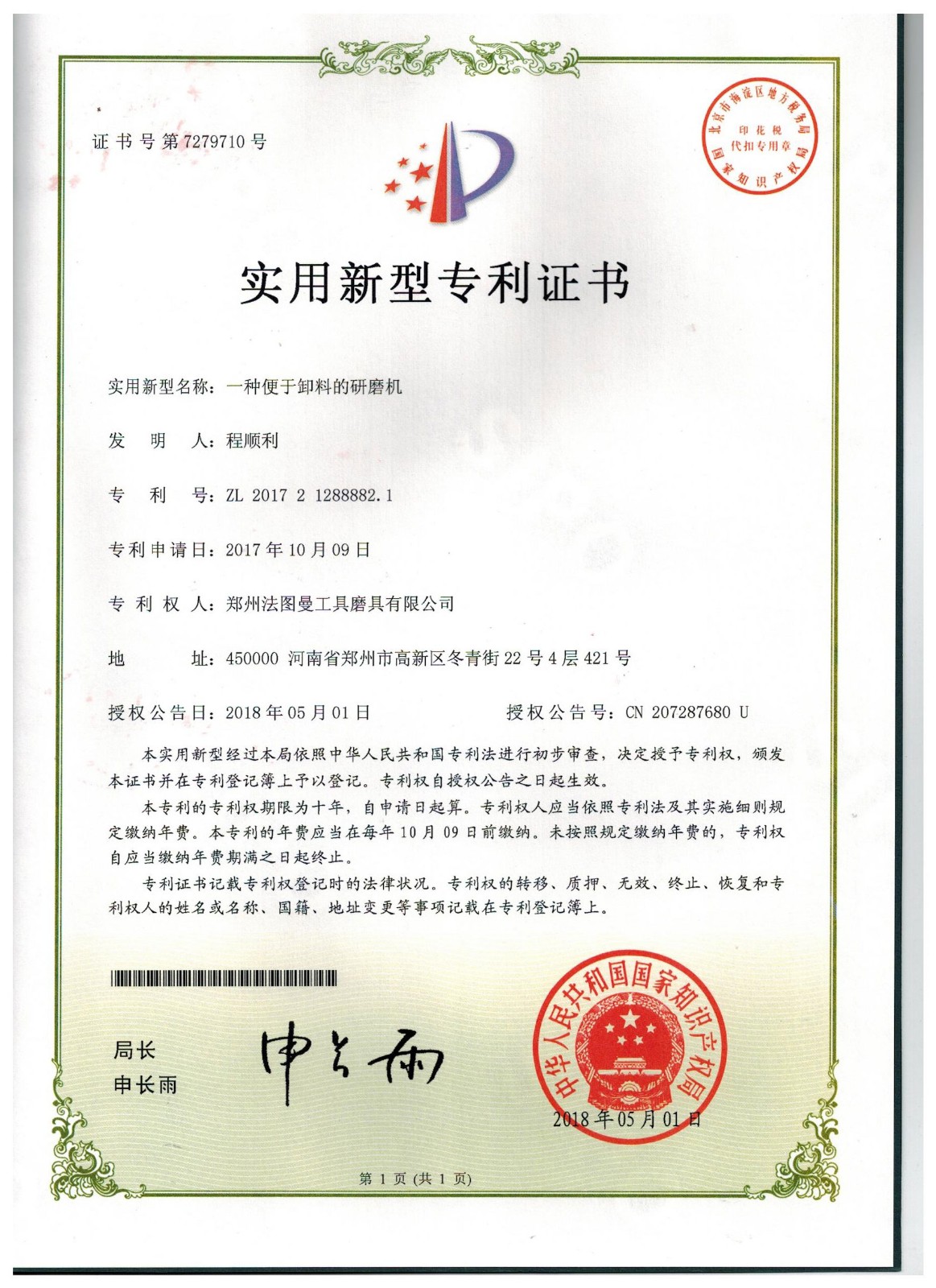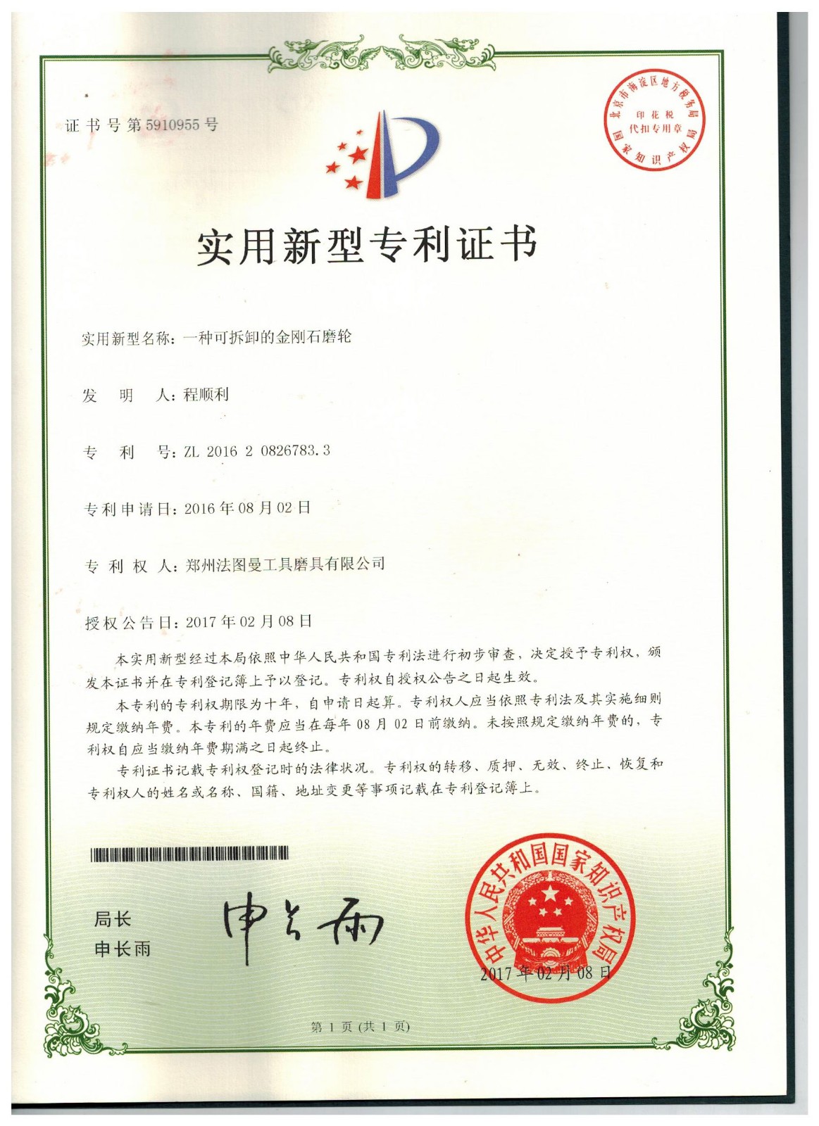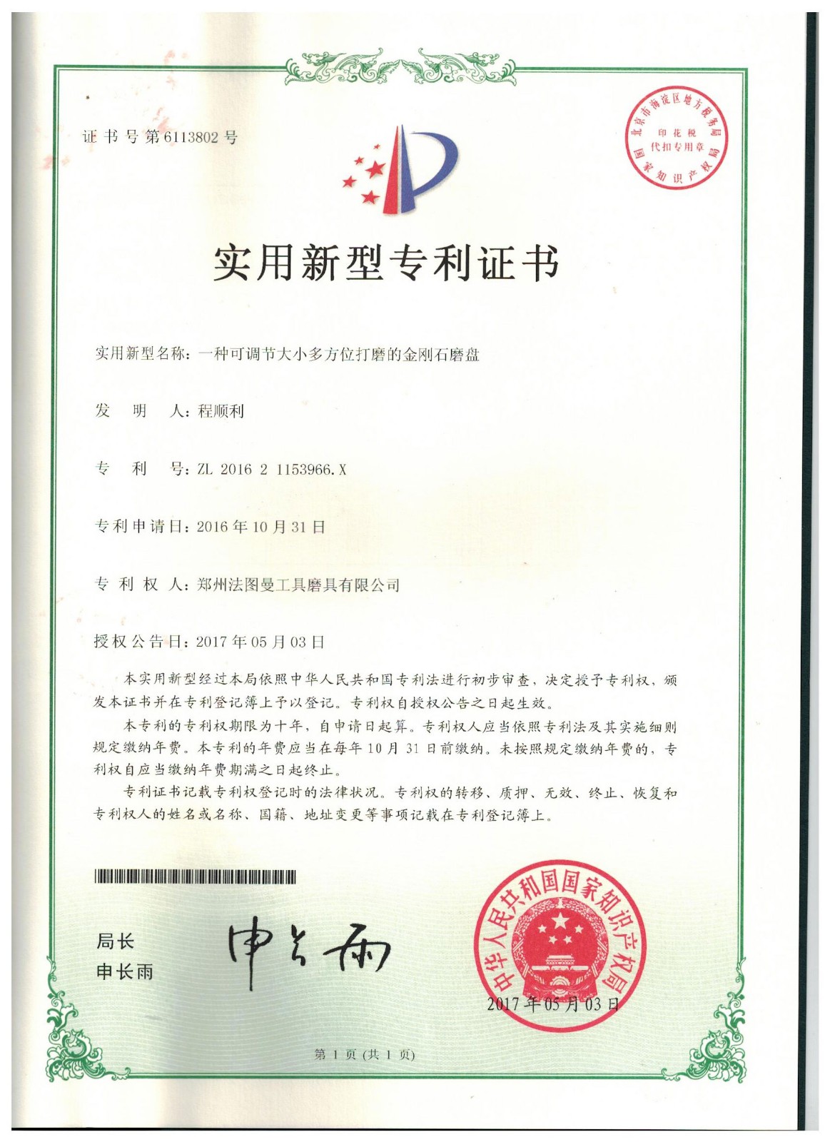 博爾德集團旗下專利證書展示